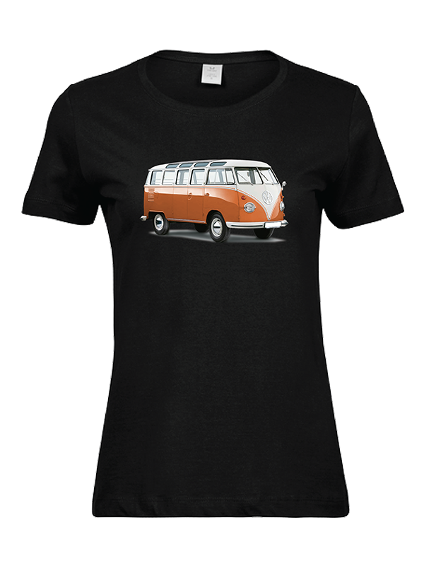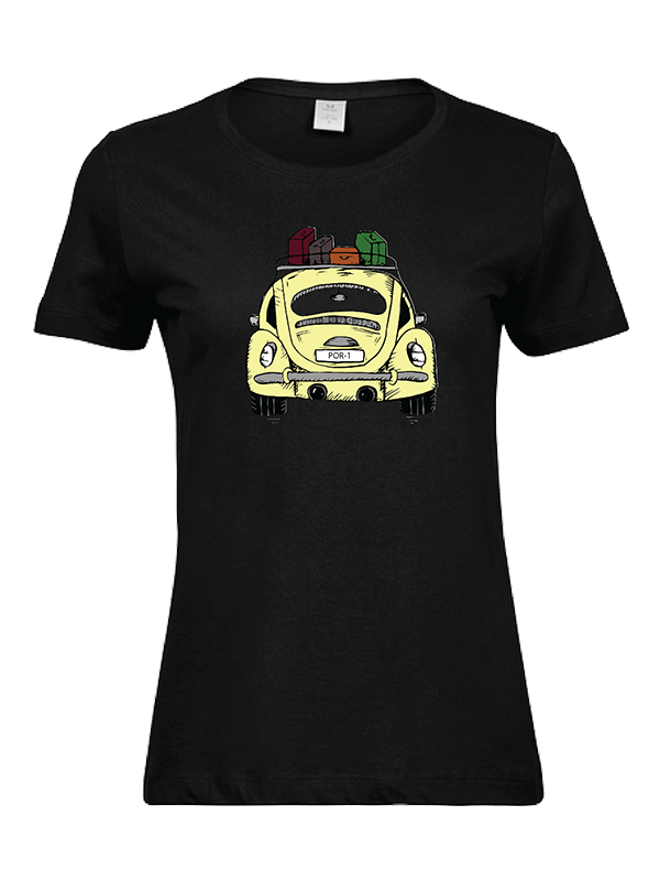 Tämä autoaiheinen naisten t-paita on loistava valinta, kun haluat yhdistää persoonallisen tyylin ja matkakuumeen samaan asuun. (Keltaiseen kuplaan saa rekisterinumeron vaihdettua)